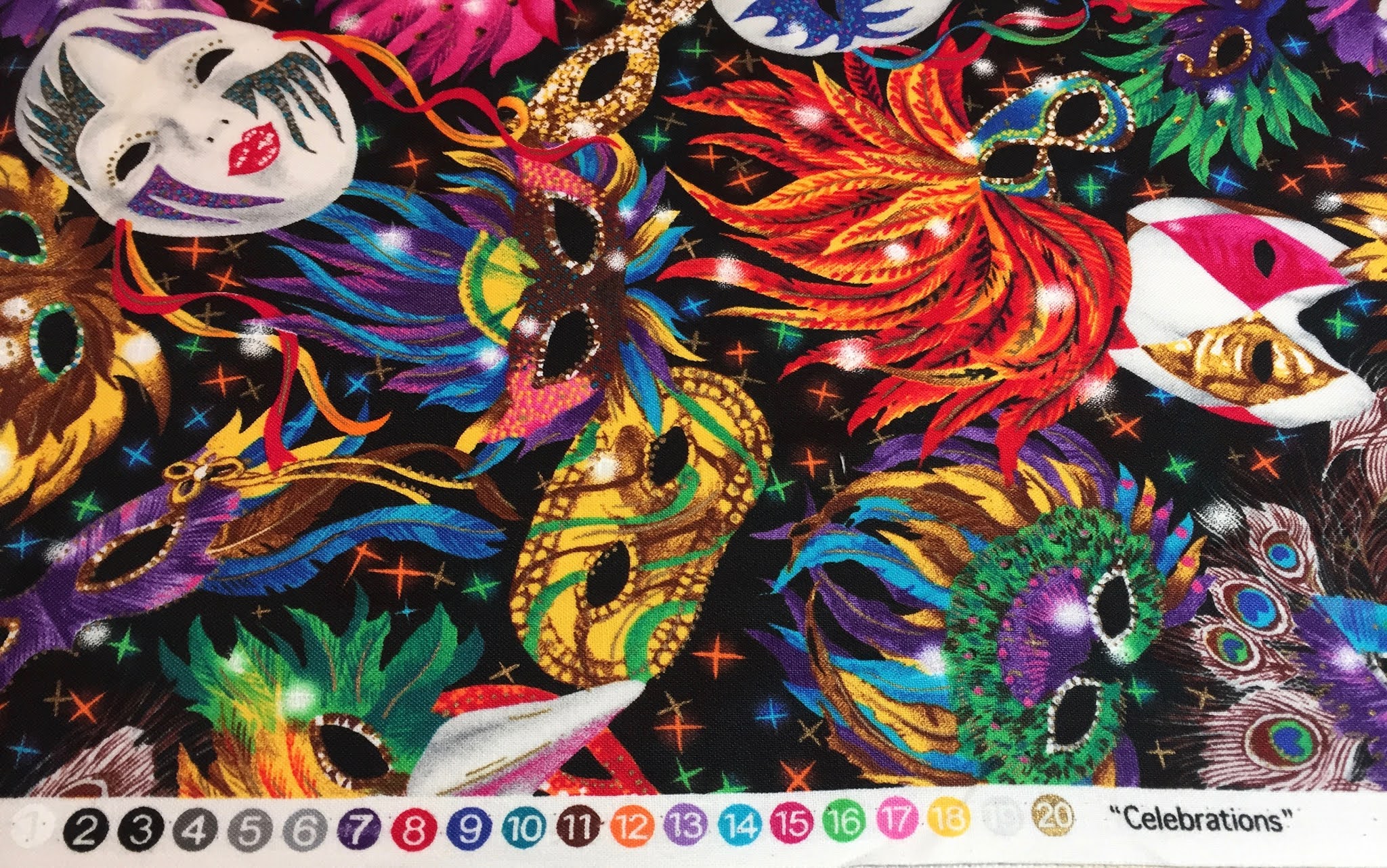 Celebrations by Robert Kaufman. I had ⅞ yard left. Just look at all those colors in the registration dots along the selvage –