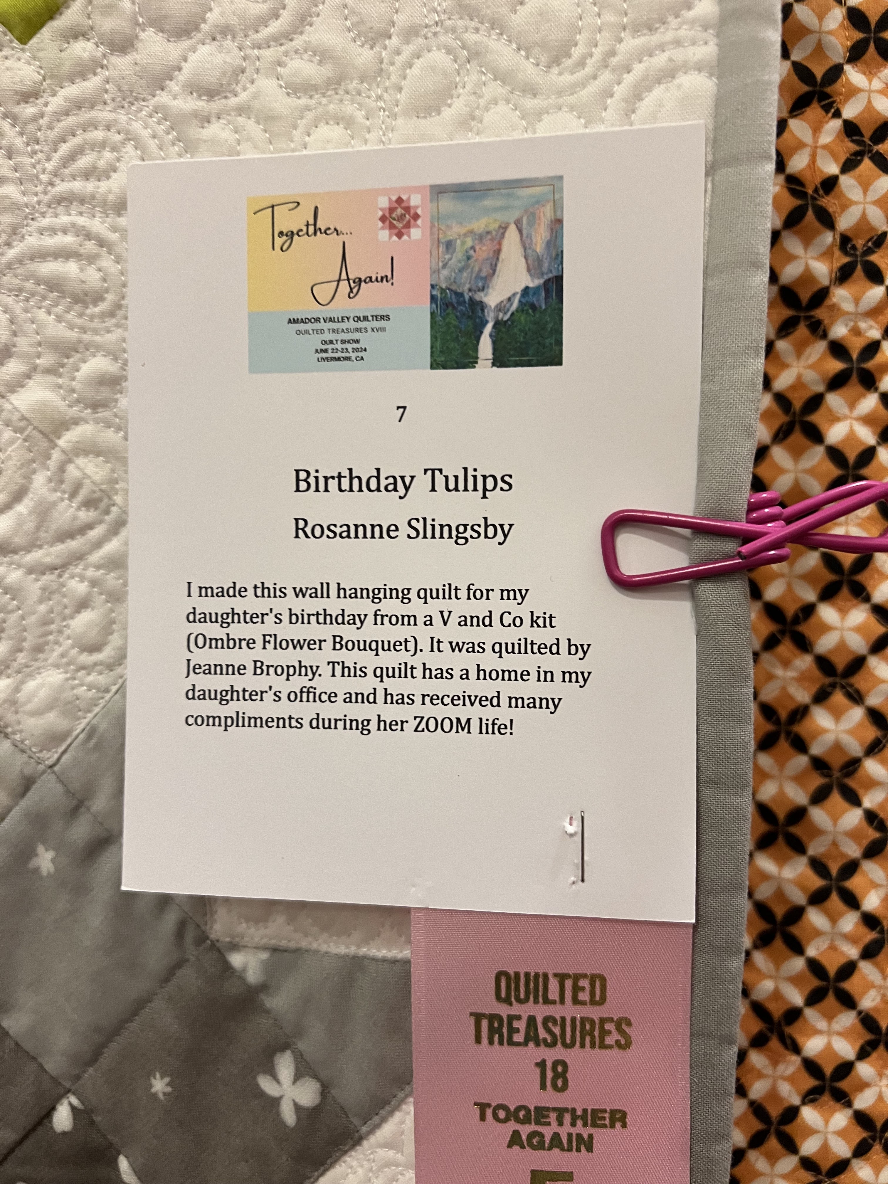 The 2024 AVQ Quilt Show with over 300 quilts and small wall hangings had a lot to take in and admire. I can barely do it justice in this blog post so I will cite only seven of my favorites. There is no competition here. This subset is made up of my choices for various reasons... not necessarily because of exquisite workmanship nor unique original design ... but just because each appealed to me due to color or mood or inspiration. My own entries to the show are not in this post but can be found in my previous post dated 6/14/24.